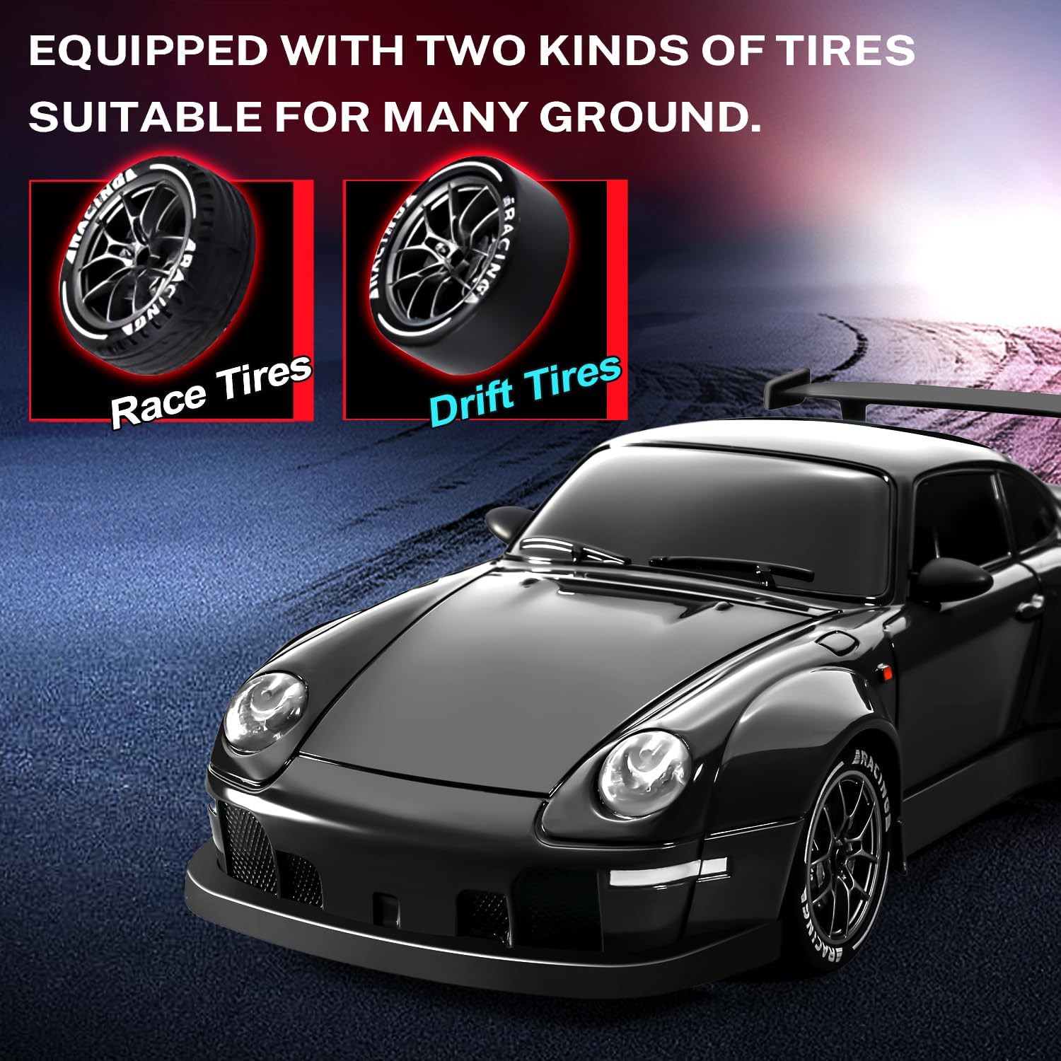 - Features: LED lights, extra drift tires included