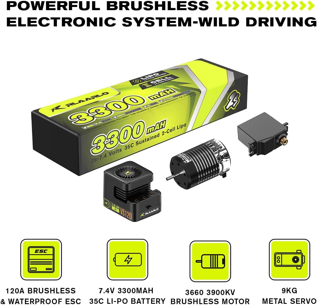 - ESC: 120A brushless, 2S/3S compatible with light control.