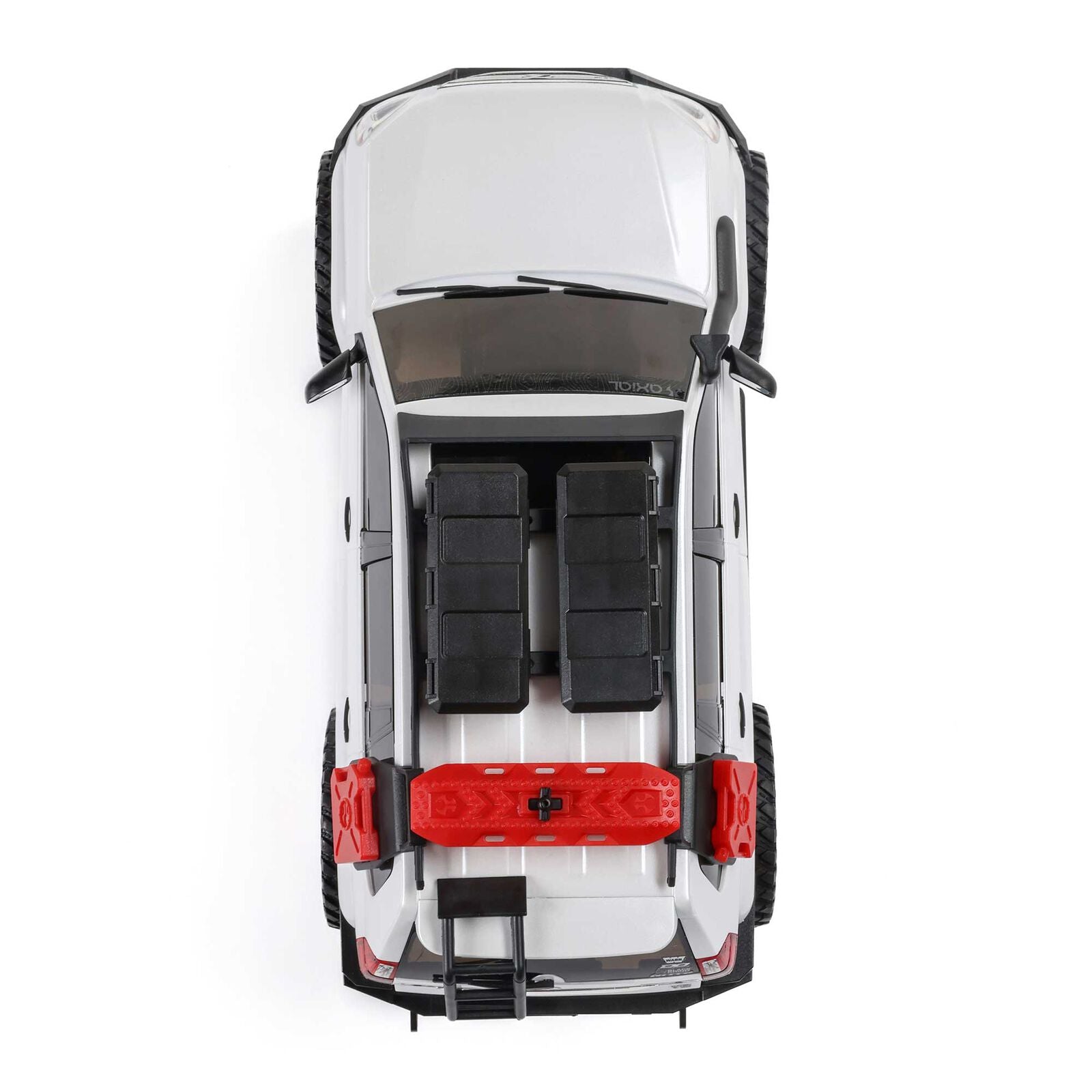 The officially licensed Lexus GX 470 body, available in white, silver, or black, boasts exceptional detail with working LED lights and molded lenses, enhancing its scale realism for collectors and crawlers alike. Officially licensed Nitto Trail Grappler M/T tires and Black Rhino Raid wheels offer excellent grip on rough terrain while maintaining on-road composure. The steel C-channel frame and axles ensure durability, but the ABS body’s weight may slightly reduce agility on technical courses. The clipless hinged body simplifies battery access.