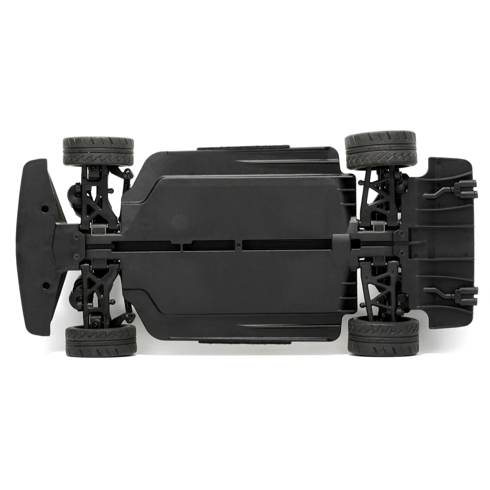 A 370-size brushed motor pushes the car to 15 mph on flat surfaces, sufficient for initiating and holding drifts through tight corners. The 2WD configuration channels power exclusively to the rear wheels, requiring smooth throttle modulation to maintain slide angles. On polished concrete or asphalt, the drift tires provide consistent grip release; however, minor surface imperfections can cause abrupt snap-back. Motor temperatures rise after 10 minutes of continuous drifting, so brief cool-down periods extend component life. Runtime averages 18 minutes under mixed driving, though aggressive sessions shorten this to 12–14 minutes. The low ride height enhances stability during slides but limits clearance over curbs or debris.