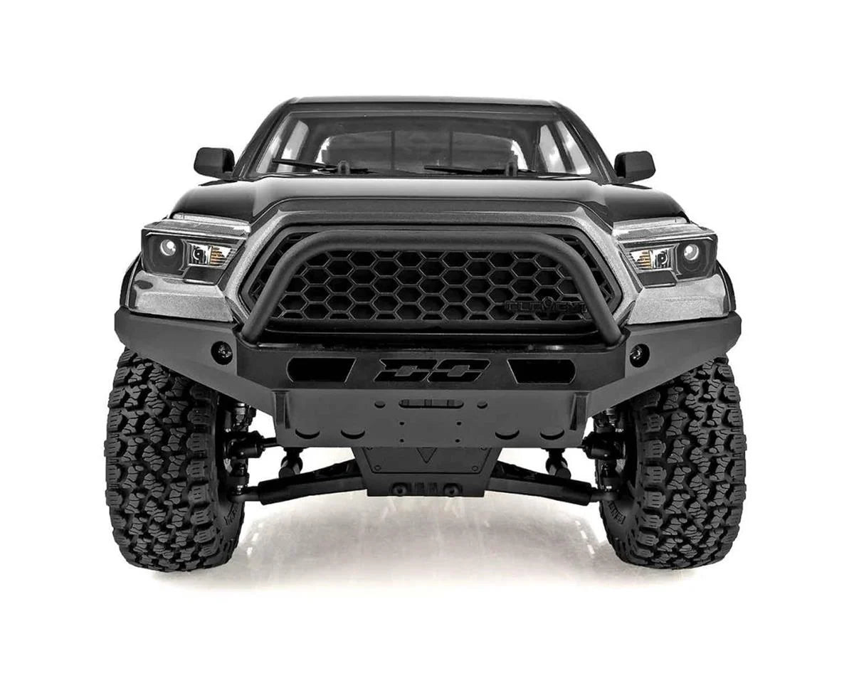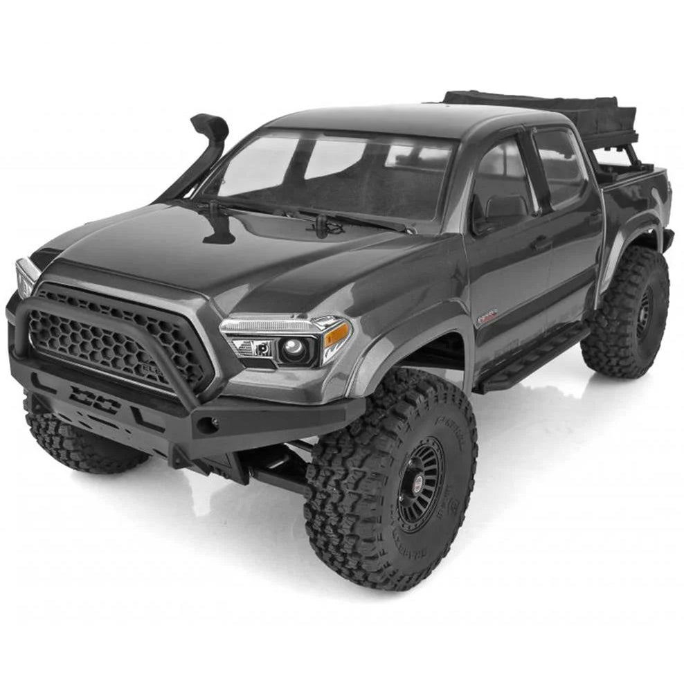 The gun metal polycarbonate body, with injection-molded grille, mirrors, wipers, and licensed DeMello bumpers, Front Runner rack, and Magnaflow exhaust, offers high-scale realism. Decal sheets with overland graphics allow customization, though body post holes may detract from aesthetics [web:0]. The body may scratch during rough crawls, and no LED lights are included, but aftermarket options exist. The steel frame rails and metal servo horn enhance durability, with extensive aftermarket support for upgrades like winches.