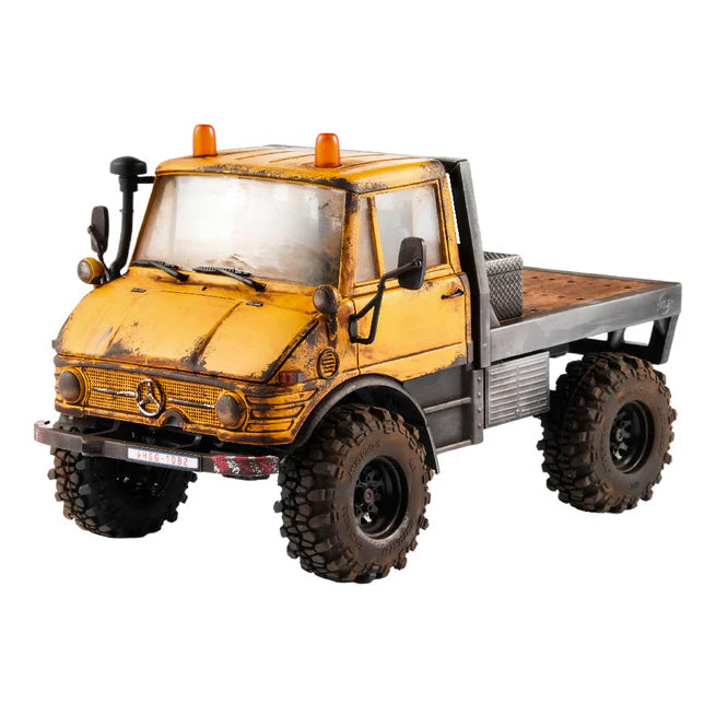 The 1/24 scale FCX24 Woodlander RTR Truck is a heavily weathered custom-mod version of the Mercedes-Benz Unimog, built for micro-crawling performance and distinctive character. This version features a rusted yellow paint scheme that gives it a rugged, trail-worn aesthetic straight out of the box. Ideal for collectors and RC enthusiasts who appreciate both function and form, this micro crawler blends scale realism with capable mechanics.