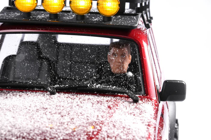 The crawler’s Lexan body is lightweight yet durable, with a quick-release system for easy chassis access. Batrazzi 1.9” Precipice tires, made with 70% Butyl rubber, provide strong grip, paired with aluminum beadlock D-Hole wheels for added resilience. The metal beam chassis and hydraulic shocks withstand rough use, though the plastic body may scratch on sharp rocks. A 3D-printed front bumper adds scale realism but requires careful handling to avoid damage.