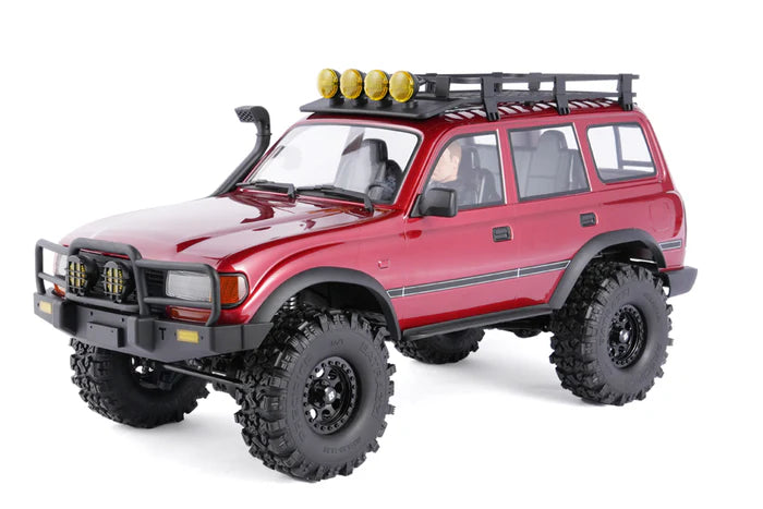 The FairRC 1/10 FCX10 Cardinal Mod RS is a modified RC rock crawler designed for off-road enthusiasts, featuring a cardinal red repaint and upgraded components. Built on the FMS FCX10 chassis, this 1/10 scale RC car offers robust performance for navigating rocky trails and uneven terrain. With Batrazzi tires and aluminum wheels, it combines durability with a striking appearance for hobbyists seeking a customizable scale RC car.