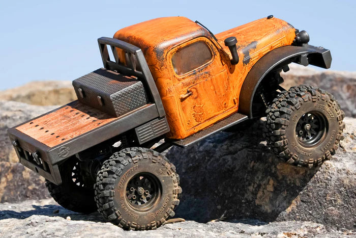 The Rustwood Mod celebrates nostalgic scale realism with its handcrafted weathered appearance and authentic wooden bed—perfect for collectors and trail enthusiasts alike. While it's performance-capable, the aged finish adds character rather than weatherproof protection.