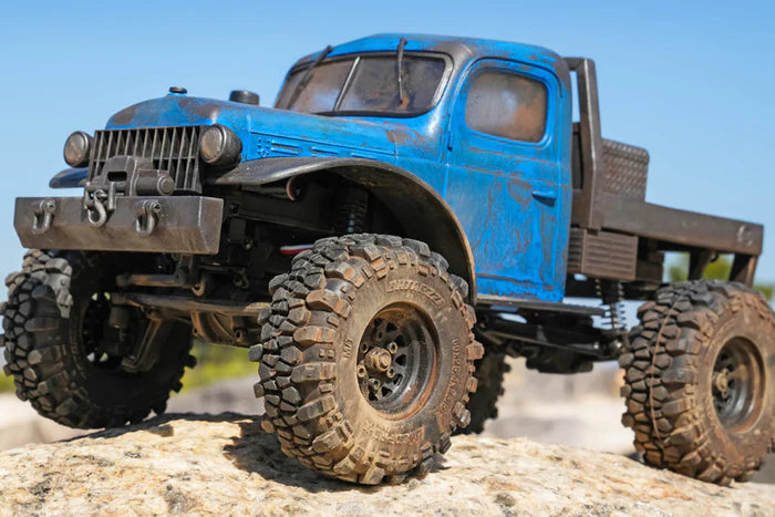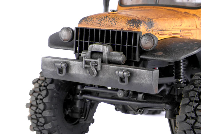 This Ready-to-Run model includes required electronics and comes fully assembled—simply install the required batteries and hit the trail. Its body separates easily for access to the drivetrain, while its crafted flatbed and accessory elements are durable enough for display or light trail abuse.