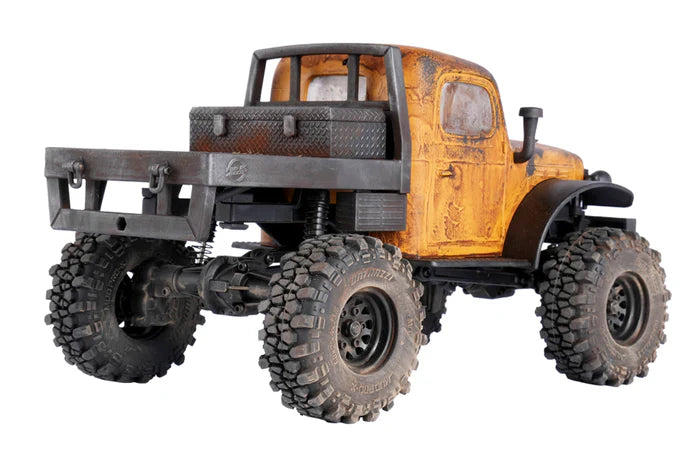 The FairRC FCX24 Rustwood Mod is a handcrafted transformation of the classic FMS FCX24 Power Wagon, now given a vintage, farm-aged look with pro-level detailing and rugged readiness. This 1/24 Ready-to-Run crawler captures the soul of rural workhorses by blending handcrafted craftsmanship—like a real wooden flatbed and rusted patina—with reliable trail performance.