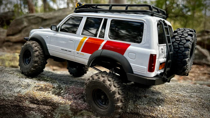 The FairRC FCX18 LC80 Tri-Color V2 1/18 4WD Ready to Run replicates the Toyota Land Cruiser LC80 with a vibrant tri-color livery inspired by Ivan Stewart’s off-road legacy. Featuring a 3200KV brushless motor, a high-strength metal-beam chassis, and Batrazzi Mud Pro-X tires, this micro RC crawler delivers enhanced performance for trail enthusiasts. With a 2-speed transmission and remote-controlled lights, it offers versatility for scale RC car hobbyists seeking rugged off-road capability.