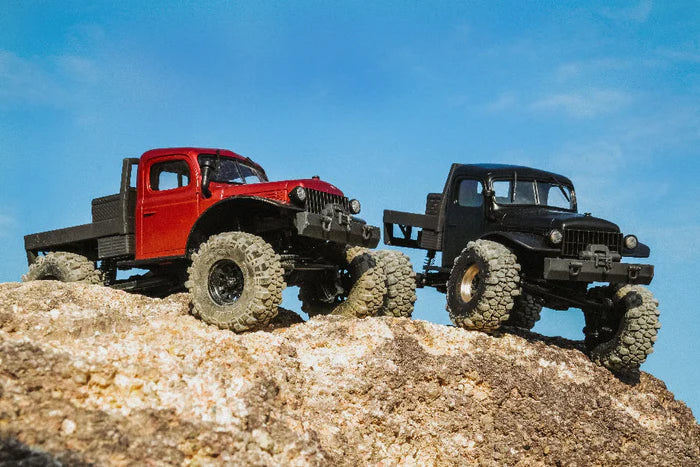The FairRC FCX24 Timberline Mod 1/24 4WD Ready-to-Run combines a detailed Power Wagon replica with upgraded components for micro-scale off-road adventures. This micro RC crawler features a handcrafted 3D-printed flatbed with real wooden panels, Batrazzi Mud Pro-X tires, and a two-speed transmission, designed for trail performance and scale realism. Available in red, blue, yellow, or black, it suits hobbyists interested in RC rock crawlers and detailed scale models.