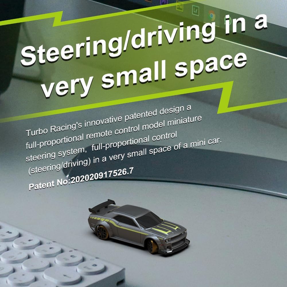FLYCOLOR Turbo Racing 1:76 C65 Drift RC Car with Gyro RTR – Grey