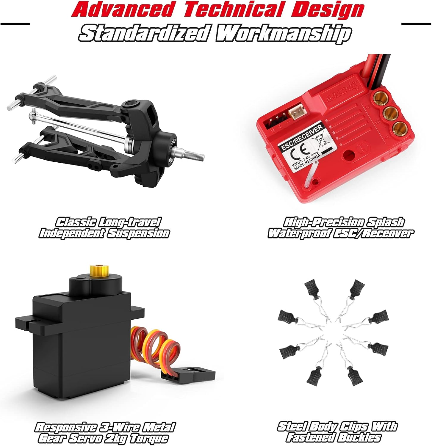 Special Notes: This is a Ready-to-Run model, fully assembled with a pre-painted body, 7.4V 500mAh battery, and USB charger included. Requires 4 AA batteries for the transmitter (not included). Suitable for beginners learning to bash, but experienced users can adjust the suspension for better performance.