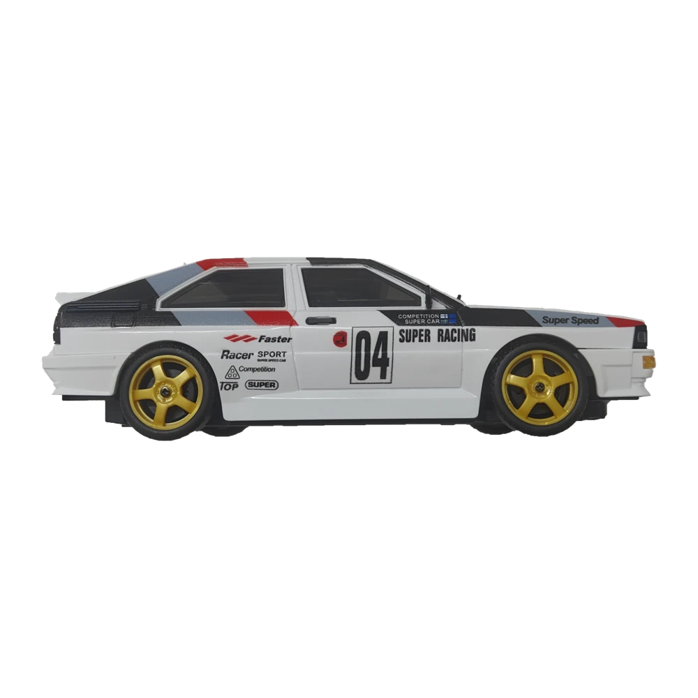 The LDRC 2804 PRO 1/28 2.4G RWD Ready-to-Run Drift RC Car offers a compact solution for micro RC drift car enthusiasts, designed for smooth sliding on indoor tracks or polished surfaces. Featuring a brushed motor, built-in gyroscope, and LED headlights, this RC racing car strikes a balance between control and visual appeal. Available in white with blue, red, or black accents, it suits hobbyists seeking an affordable entry into on-road drifting.