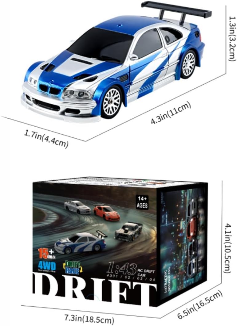 Mini RC Drift Car 1/43 4WD Ready to Run with BMW 3 Series-Inspired Body and LED Lights