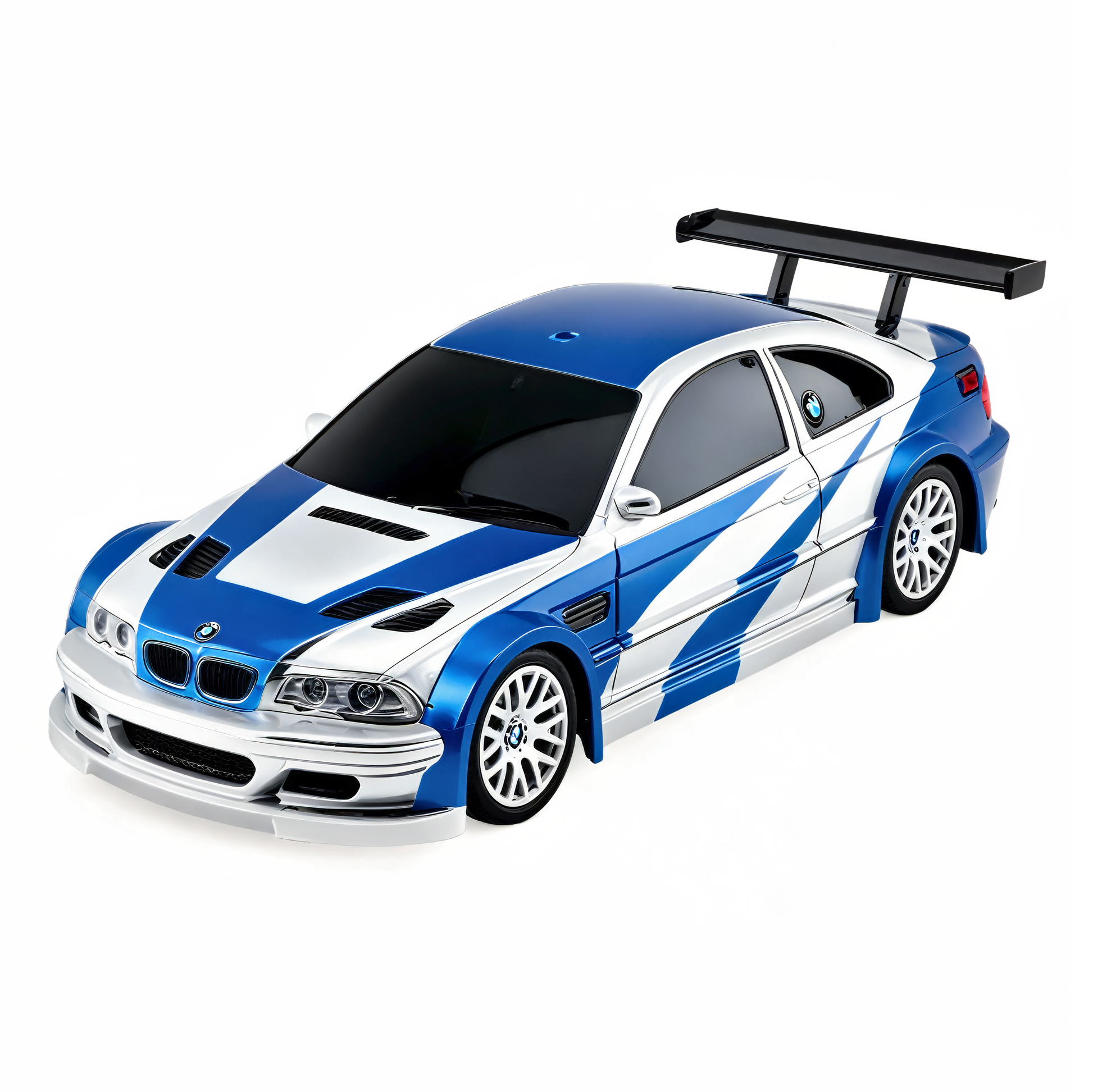 The BMW 3 Series-inspired body features detailed headlights, taillights, and a sleek profile, enhanced by simulated LED lights for visual appeal. The plastic chassis and body are lightweight, supporting agility, but the thin material is prone to cracking or scratching during crashes, particularly on hard surfaces. Full ball bearings ensure efficient power transfer, and the included drift and grip tires offer versatility. However, the lack of a differential mechanism limits perfect drifting arcs, requiring aftermarket upgrades for serious enthusiasts. The design supports multi-car racing with 2.4GHz interference-free control.