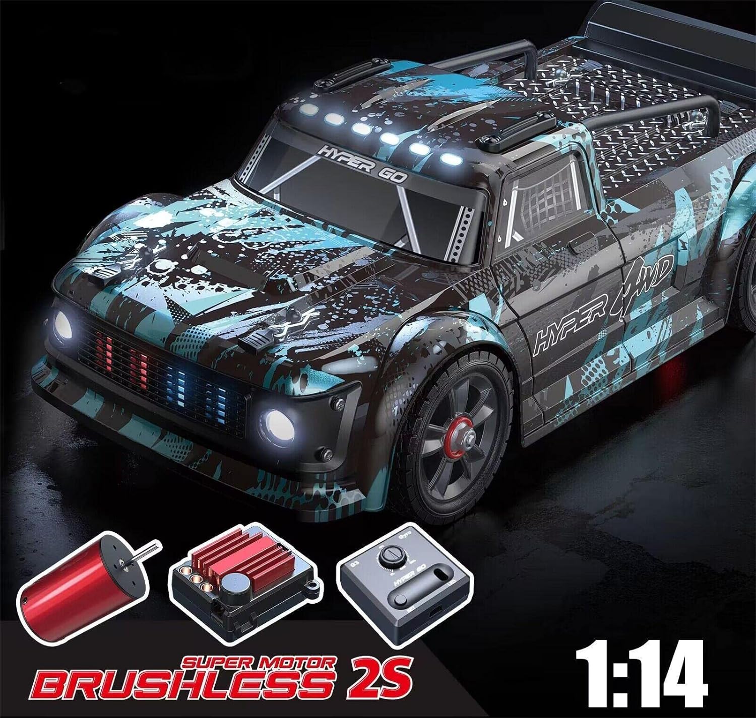 The Fenamx MJX Hyper Go 14301 1/14 4WD Brushless Ready-to-Run RC Drift Car is a fast and tough RC drift car with a sleek Terreneitor design, perfect for beginners and hobbyists. Featuring a 2845 3700KV brushless motor, adjustable gyro, and two sets of tires, it’s built for fun on pavement or light off-road tracks. This brushless RC car comes ready to race with a battery and charger included.