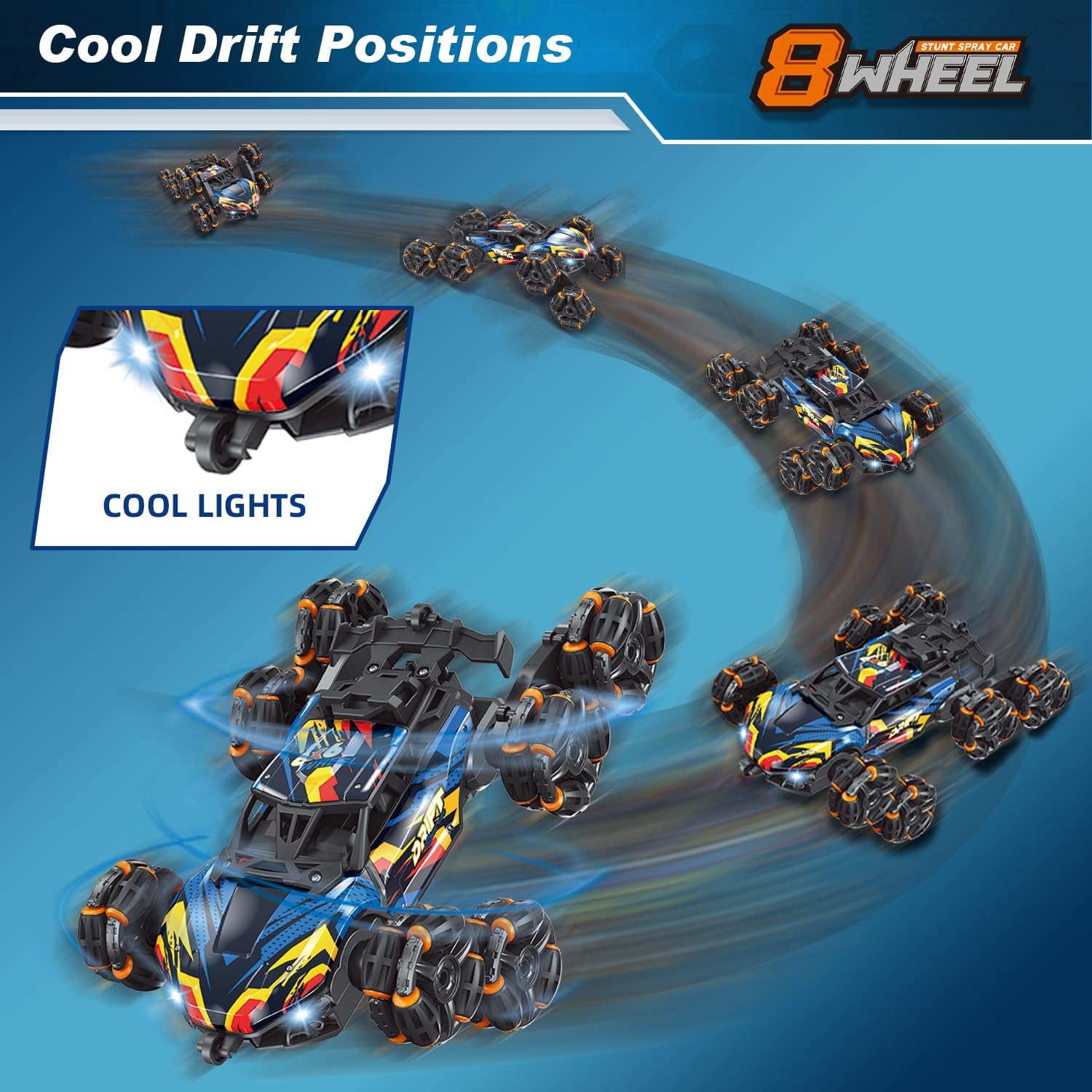 - Wheel Design: 8-wheel stunt configuration