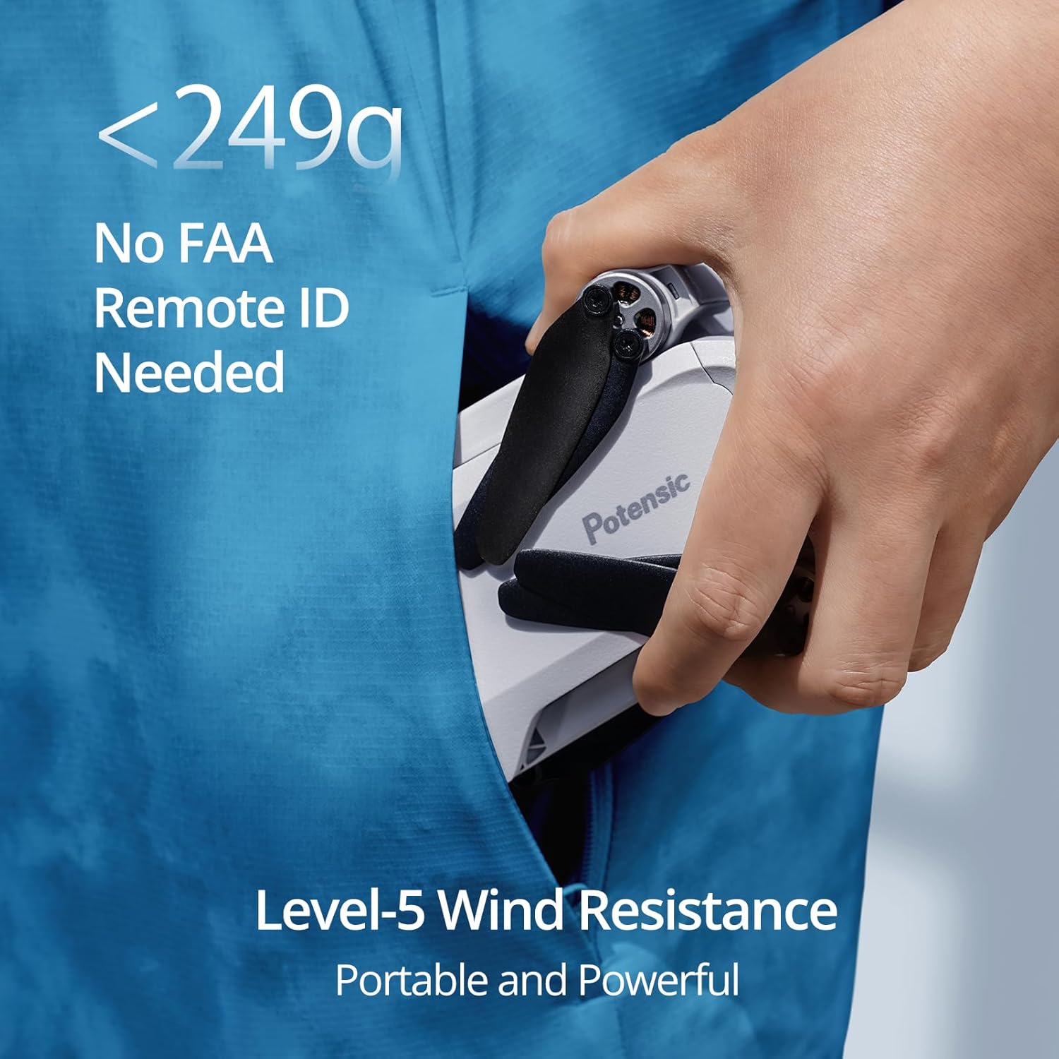 At under 249 g, it typically avoids FAA registration in the U.S. and similar requirements in many other countries. However, pilots must still follow local rules, maintain visual line of sight, and avoid restricted zones.