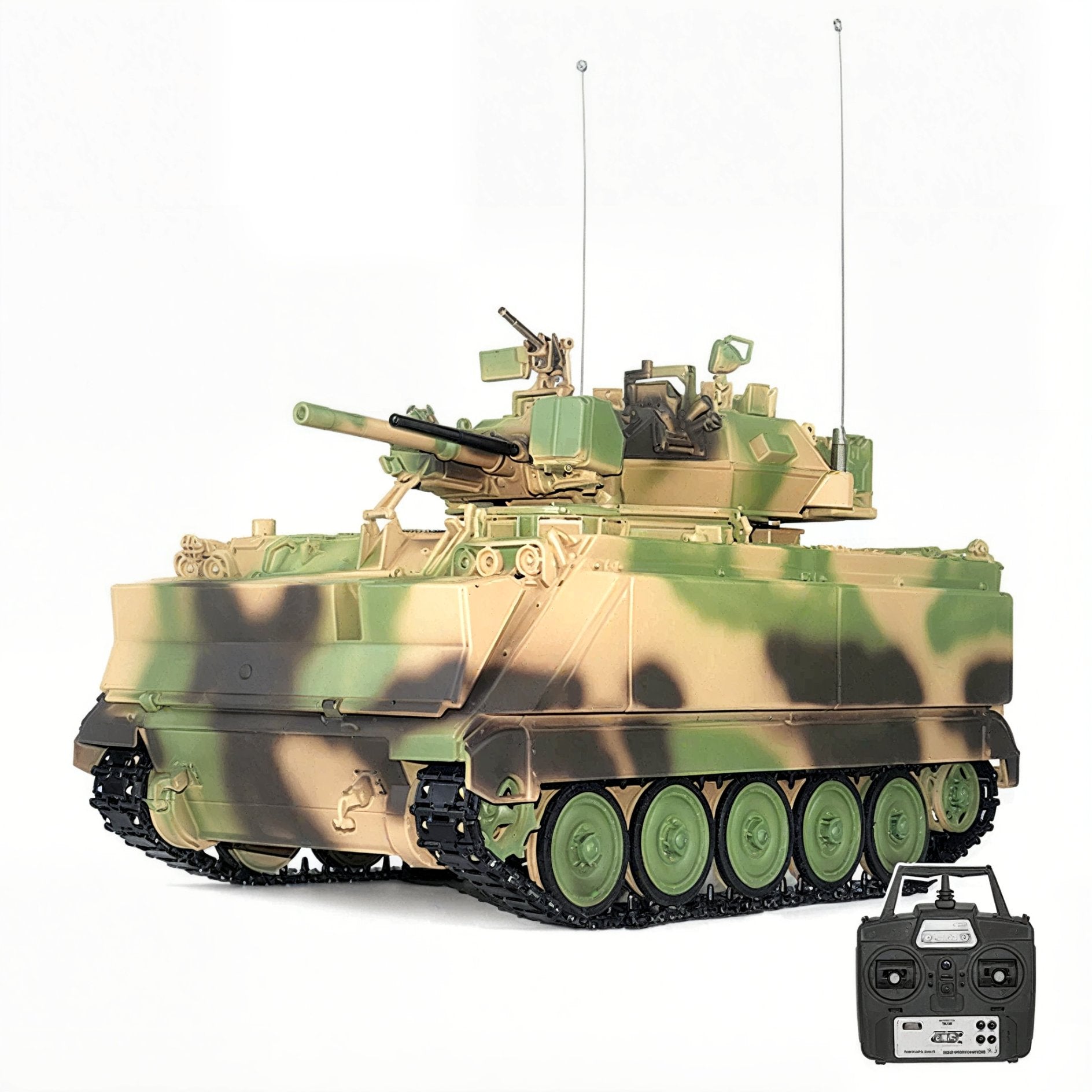 Special Notes: This is a Ready-to-Run model, fully assembled with a pre-painted M113A1 MRV body, 7.4V 700mAh Li-ion battery, USB charger, and smoke oil included. Requires 4 AA batteries for the transmitter (not included). Suitable for beginners with simple controls, but experienced users can upgrade tracks or wheels for enhanced performance.