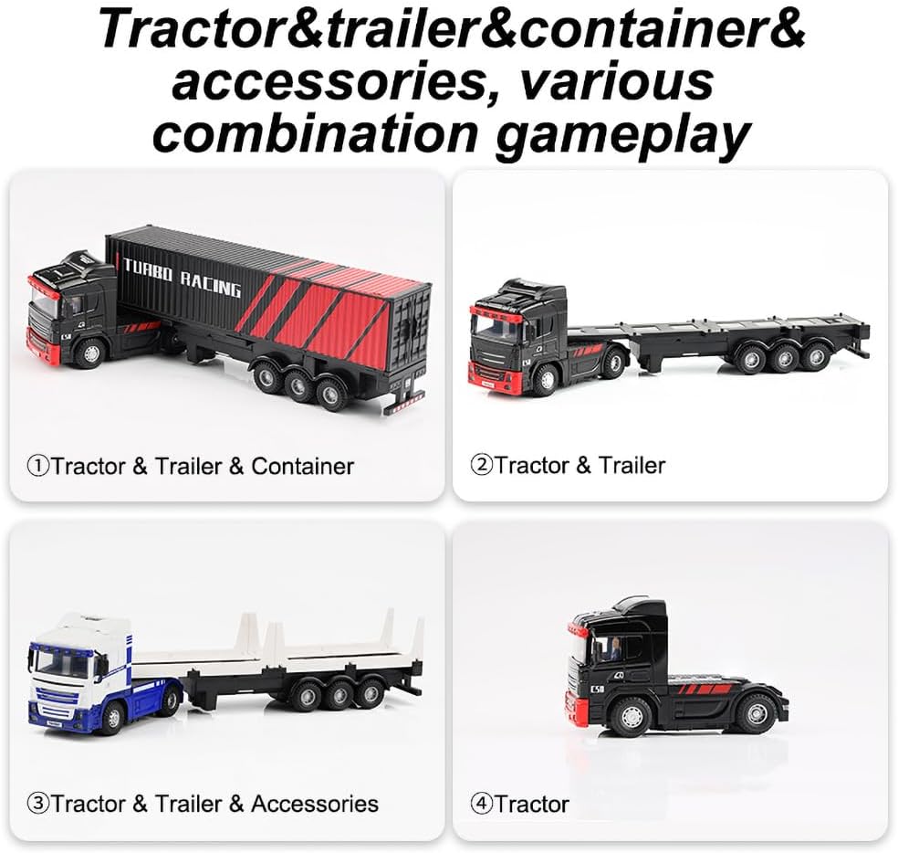 Special Notes: This is a Ready to Run model, fully assembled with a pre-painted tractor-trailer, two containers, a 150mAh tractor battery, a 75mAh trailer battery, and a Type-C charging cable. Requires 4x AA batteries for the transmitter (not included). Suitable for beginners with adjustable controls, while advanced users can tweak speed settings for varied performance.